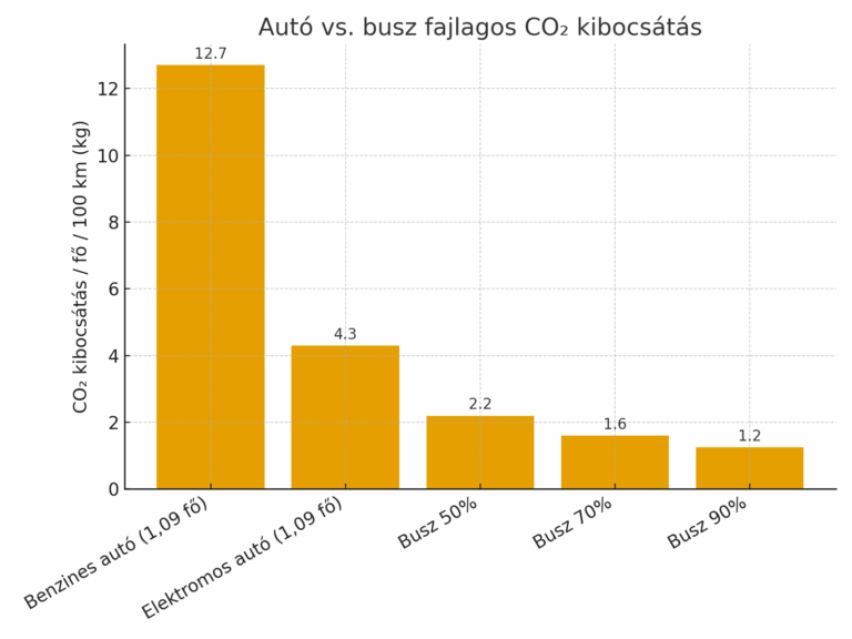 :::info Autó vs. busz – fajlagos CO₂ összehasonlítás