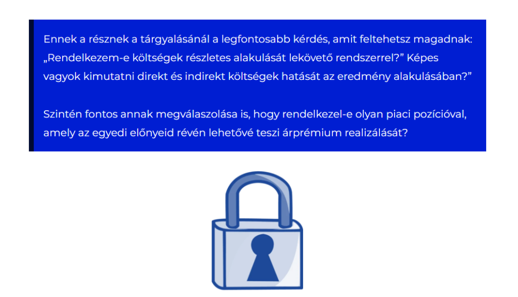Nyilván ebben a tekintetben sem szabad átesni a ló túlsó oldalára. De egy jól felépített költségstruktúrával, a költségek osztályozásával, illetve a szigorú költségvetés használatával óriási eredményeket lehet befolyásolni. Nem szabad elfelejteni, hogy minden egyes megtakarított forint tiszta nyereséget jelent.